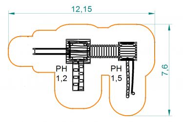 Die Aktivitätsanlage "Kneipp" besteht aus zwei Grundtürmen mit und ohne Dach, die mit einer festen Brücke verbunden sind. Weitere Spielelemente sind: - Stammaufstieg - Kletterwand - Leiter - Rampe mit Seil