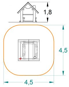 Die „Stelzenhütte“ bietet eine Mischung aus Rollen- und Bewegungsspieloptionen. Im hinteren Raum der Hütte können sich die Kinder zurückziehen, die Rutsche und der Aufstieg lassen einen Spielkreislauf zu.