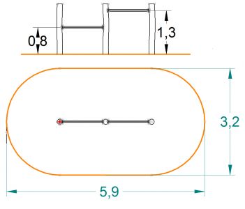 Das Doppelreck ist das universelle“Sport„ -gerät, das von den kleineren Kindern mit Elan beklettert wird und an dem die etwas Größeren Kunststücke üben.